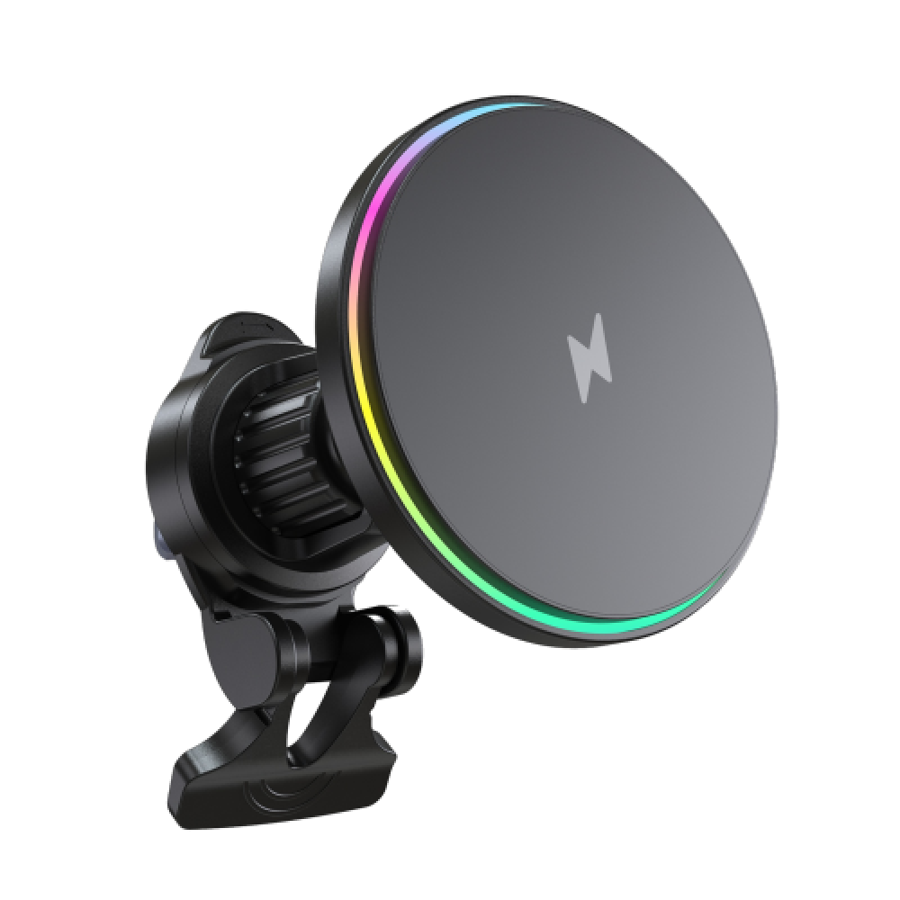 قاعدة شحن لاسلكي للسيارة عملية ومبتكرة تثبت الهاتف داخل السيارة مع توفير شحن لاسلكي سريع ومستقر. تصميم مغناطيسي يسهل الاستخدام بيد واحدة أثناء القيادة.